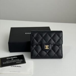 𝐂𝐇𝐀𝐍𝐄𝐋黑金荔枝牛皮雙𝐂三折短夾