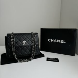 NT$0▫️𝗦𝗶𝘇𝗲:24*18*10cm ▫️𝗔𝗰𝗰𝗲𝘀𝘀𝗼𝗿𝗶𝗲𝘀:保卡、副廠黑金皮穿鏈或副廠黑色荔枝皮背帶擇一、entrupy鑑定證書電子檔 中古絕版品、現代專櫃已復刻爆款 價格只要1/3不到❤️🔥 經典黑金配色,以浮雕大雙C Logo點綴包身,簡約優雅 方正硬挺的盒子包型,復古感滿滿 耐磨耐刮的荔枝牛皮,保值好顧又實用.ᐟ.ᐟ 雙拉鍊開闔方式,拉鍊頭的雙C圓釦極可愛,細節精緻✨ 手提或搭配贈送的鏈條或背帶都百搭好看🥰 內裏夾層空間豐富,容量充足 長夾大手機放入還有空間~ 5開頭的老香可遇不可求,且是搶手的黑金荔枝牛皮,非常值得收藏⸜♡⸝
