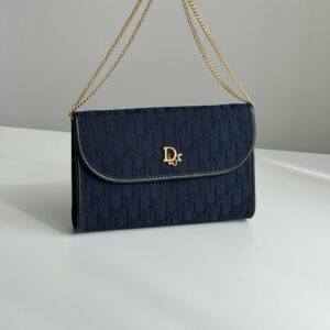 𝐃𝐈𝐎𝐑深藍老花金鏈𝟐𝐰𝐚𝐲信封包