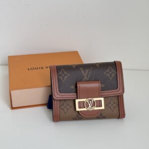 NT$0這款Dauphine小型錢包風格源自經典Dauphine手袋,精緻的設計結合Monogram及Monogram Reverse帆布製作,綴有小牛皮飾邊,配備Dauphine標誌性磁石開合扣,內部空間充足,長口袋可放紙幣用,而側面側設有拉鏈零錢格。 狀況:95成新保存美品,皮革保存狀況良好、邊角內裏乾淨。 尺寸:12 x 9.5 x 3.5cm。 配件:原廠收納盒、原廠防塵袋。專櫃原價$36,500,現省約6折。