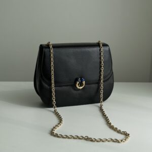尺寸:23.5長*7寬*18高,背帶金鏈100公分(不可調) 狀況:9新以上古董美品,皮革正常使用痕跡,寶石/五金無褪色。 配件:訂製防塵袋。 約60-70年代燙金標,珍稀皮搭配絕版寶石釦,再襯上經典馬蹄釦設計,純正古董包件~收藏必備!