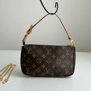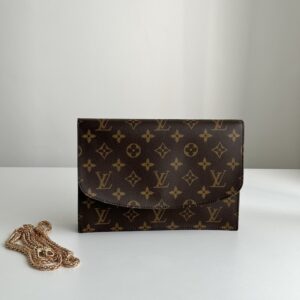 NT$0賣了好幾顆的隱藏版經典lv中古,原設計為手拿包,加裝釘釦搭配金鏈後更易切換使用~ 1999年出產作品,產量不多不易收集,喜歡把握🤎 狀態:整體92成新以上,拉鏈五金閃亮,內裡乾淨,保存良好古董美品。 尺寸:23*16*3.5公分。 配件:副廠110公分金鍊、訂製防塵袋。 *皆會免費安裝釘釦完畢後出貨*