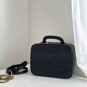 NT$0▫️𝗦𝗶𝘇𝗲:24*18*10cm ▫️𝗔𝗰𝗰𝗲𝘀𝘀𝗼𝗿𝗶𝗲𝘀:保卡、副廠黑金皮穿鏈或副廠黑色荔枝皮背帶擇一、entrupy鑑定證書電子檔 中古絕版品、現代專櫃已復刻爆款 價格只要1/3不到❤️🔥 經典黑金配色,以浮雕大雙C Logo點綴包身,簡約優雅 方正硬挺的盒子包型,復古感滿滿 耐磨耐刮的荔枝牛皮,保值好顧又實用.ᐟ.ᐟ 雙拉鍊開闔方式,拉鍊頭的雙C圓釦極可愛,細節精緻✨ 手提或搭配贈送的鏈條或背帶都百搭好看🥰 內裏夾層空間豐富,容量充足 長夾大手機放入還有空間~ 5開頭的老香可遇不可求,且是搶手的黑金荔枝牛皮,非常值得收藏⸜♡⸝