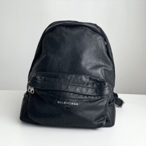 𝐁𝐀𝐋𝐄𝐍𝐂𝐈𝐀𝐆𝐀黑銀皺摺皮革小𝐋𝐨𝐠𝐨後背包