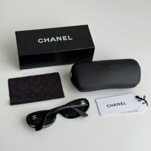 NT$0時髦率性的貓眼墨鏡,以精緻小雙CC金釦點綴,細節豐富。 尺寸:雙邊長14.5cm。單邊鏡面5*3cm 配件:原廠鏡盒(有污)、原廠拭鏡布、原廠紙盒、說明書、乾淨防塵袋。 狀況:輕微使用感,鏡面無明顯劃痕。原廠鏡盒有污不建議使用,另附乾淨鏡盒。